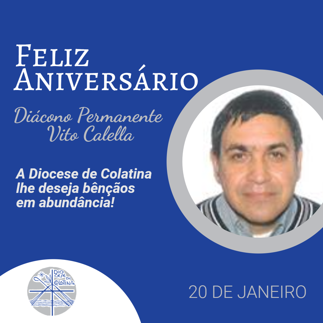 Neste dia 20 de janeiro, comemoramos o aniversário do diácono permanente Vito Calella, da Pia Sociedade São Caetano, que atua na Paróquia Cristo Rei, em Sooretama.