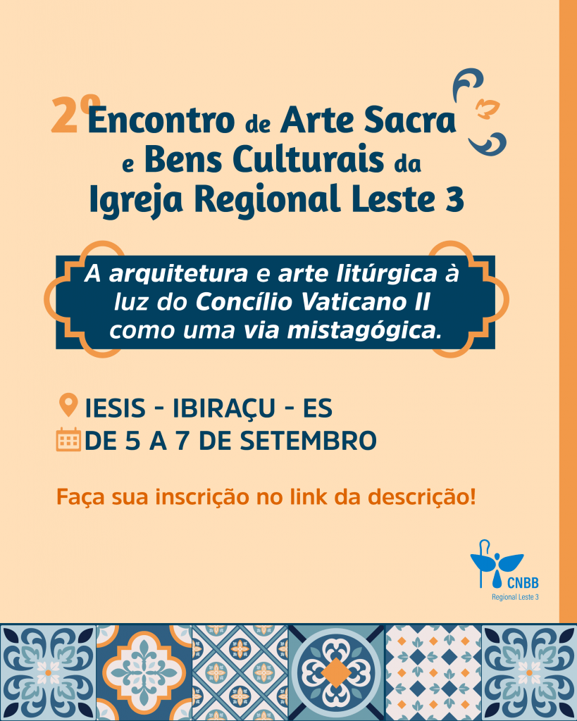 Nos dias 5, 6 e 7 de setembro, a cidade de Ibiraçu (ES) acolhe o 2º Encontro de Arte Sacra e Bens Culturais, promovido pelo Regional Leste 3. O evento, que acontecerá no Instituto Espírito Santo de Inovação Social (IESIS), busca destacar a importância da arte e arquitetura sacra na liturgia da Igreja Católica, reforçando a conexão entre cultura, fé e a preservação do patrimônio religioso.