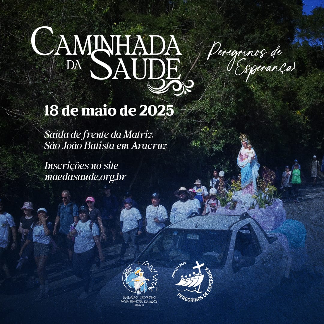 No próximo dia 18 de maio, os devotos de Nossa Senhora da Saúde são convidados a participar da Caminhada da Saúde, um momento de fé, oração e espiritualidade que, neste ano, será vivido dentro do contexto do Jubileu da Esperança. A concentração terá início às 4h30 da manhã, em frente à Igreja Matriz São João Batista, em Aracruz, com saída prevista para as 5h, rumo ao Santuário Diocesano Nossa Senhora da Saúde, em Ibiraçu.