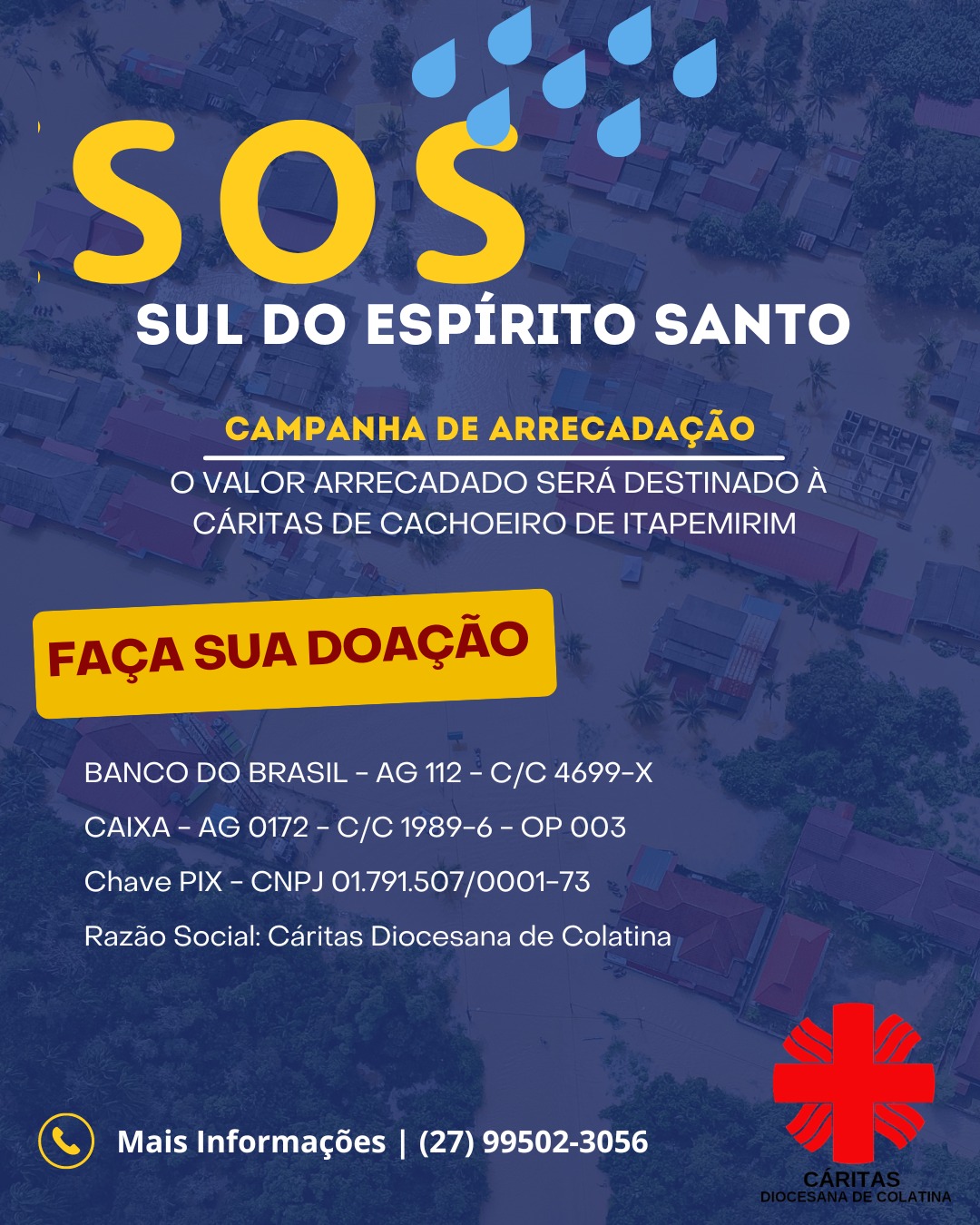 Devido às fortes chuvas que assolaram o sul do estado, a Cáritas Diocesana de Colatina lançou uma campanha de arrecadação em prol das pessoas atingidas.