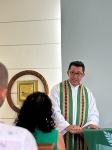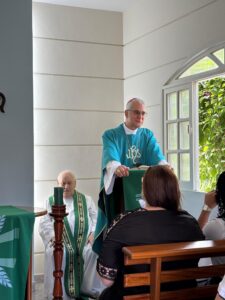 A Santa Missa foi presidida pelo bispo diocesano, Dom Lauro Sérgio Versiani Barbosa, e concelebrada pelo reitor da Casa do Propedêutico, Pe. Marinaldo Serafim, e pelo Mons. Rubens Duque. Durante a celebração, Dom Lauro, em sua homilia, acolheu a todos e refletiu sobre a importância da fé comunitária, que nasce na comunidade e nos é transmitida por outros, destacando também a relevância do trabalho evangelizador de cada cristão.
