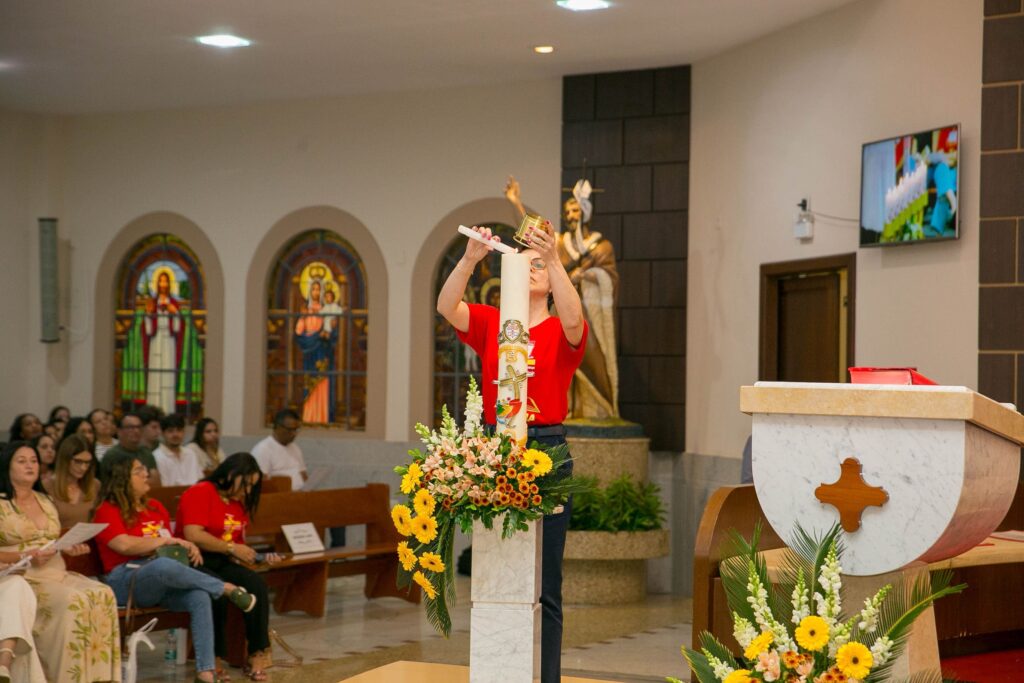 A igreja estava repleta de familiares, padrinhos e membros da comunidade, que participaram com entusiasmo e emoção da cerimônia. Os crismandos, visivelmente tocados, receberam a unção com o óleo do crisma e foram enviados como discípulos missionários, prontos para servir e evangelizar.