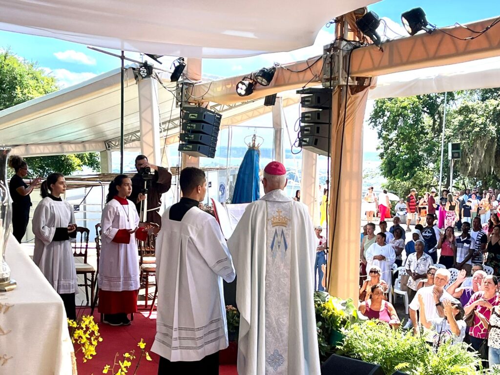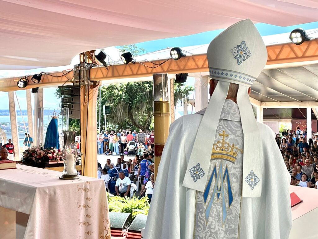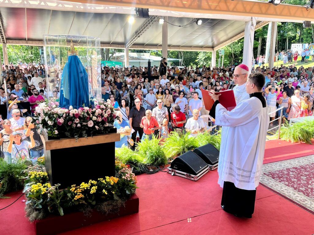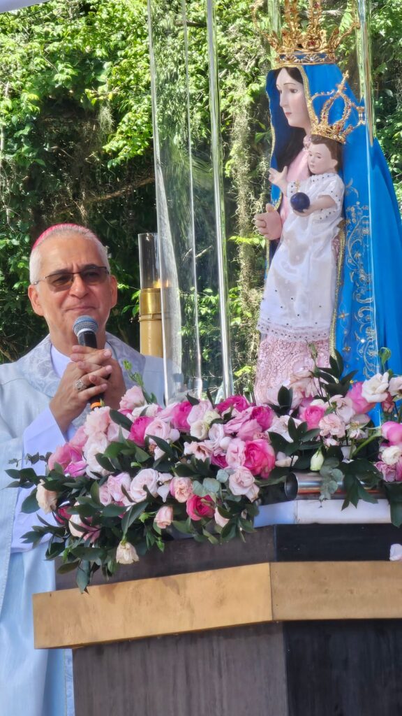 “Aqui nos reunimos nesta manhã, neste seguindo domingo da Páscoa, domingo da misericórdia, e nós viemos nos alegrar, com a Mãe de Deus e nossa, que Jesus nos deu por Mãe aos pés da Cruz. Ela que aqui na sua imagem aqui da Penha, carrega Jesus menino, nos apresentando realmente aquele que é a razão da sua alegria, do seu Júbilo.” Disse dom Lauro em sua homilia.