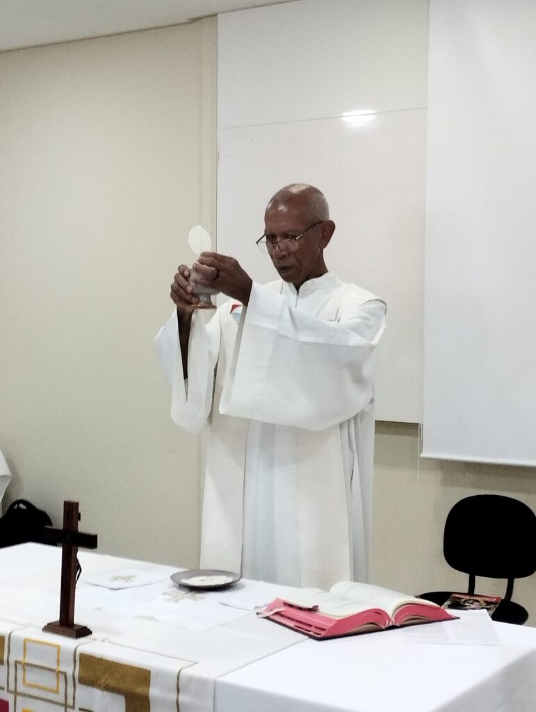 Na manhã desta quarta-feira (27), os colaboradores da cúria diocesana participaram da Santa Missa, celebrada pelo Frei Pedro, no edifício João Paulo II.