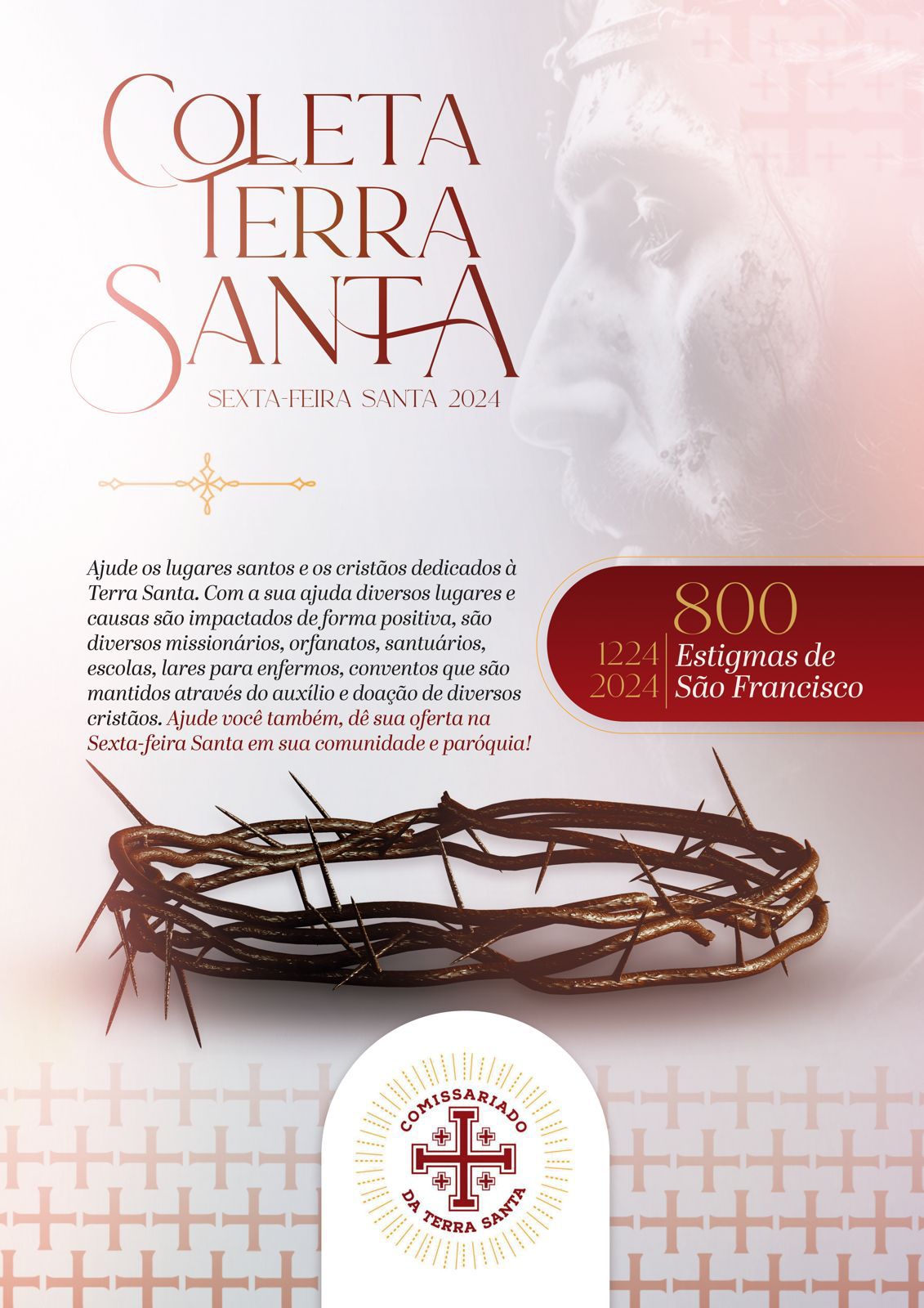 Tradicionalmente realizada na Sexta-feira Santa, é a principal fonte de sustento da vida que se desenvolve em torno dos locais sagrados na Terra Santa. O fiel pode deixar a sua contribuição após o momento de Adoração da Santa Cruz, na celebração da Sexta-Feira Santa. Ajude os lugares Santos e os cristãos dedicados à Terra Santa. Com a sua ajuda diversos lugares e causas são impactados de forma positiva, são diversos missionários, orfanatos, santuários, escolas, lares para enfermos, conventos que são mantidos através do auxílio e doação de diversos cristãos. Colabore!