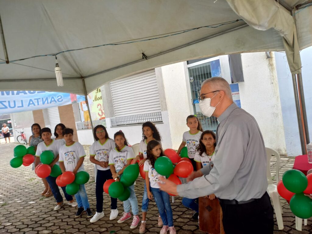 Dom Lauro aproveitou sua presença na paróquia para conhecer a Obra Social Santa Luzia que mantém o Projeto Espaço da Alegria, unidade da Cáritas Diocesana coordenada pela Irmãs Mínimas da Paixão e que atende a 150 crianças e adolescentes oferecendo serviço de convivência e fortalecimentos dos vínculos.