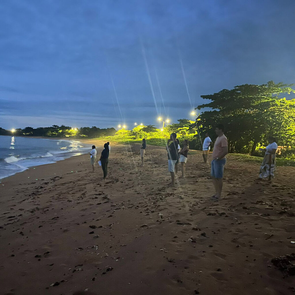 Na madrugada do sábado, os coordenadores seguiram até a praia, onde contemplaram o nascer do sol, refletindo um texto preparado pela equipe, observando a natureza, o mar, as ondas, tendo um momento de encontro consigo mesmo.