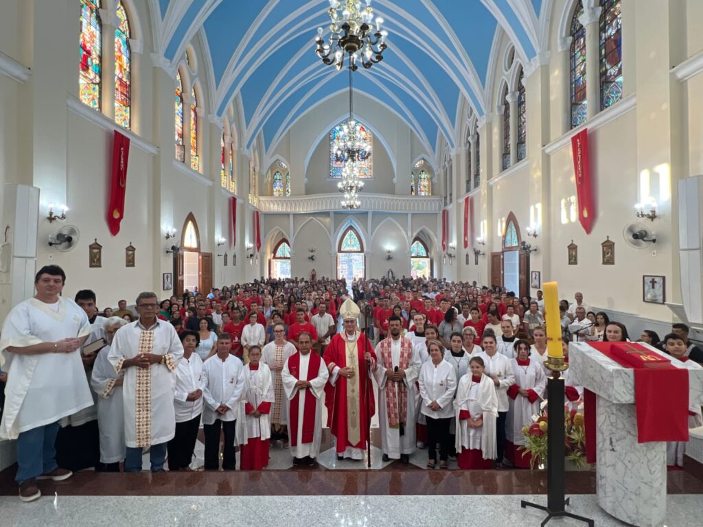 No último dia 15 de fevereiro, o bispo diocesano Dom Lauro Sérgio Versiani Barbosa conferiu o sacramento da Crisma aos jovens do “Tempo da Missão”, na Paróquia Nossa Senhora Medianeira de Todas as Graças, em Itaguaçu.