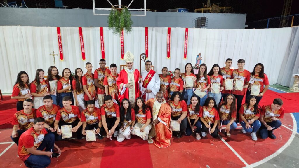 32 fiéis da Paróquia Missionária São Francisco de Assis, no município de Laranja da Terra, foram crismados no último sábado, 4 de maio. A missa do sacramento de confirmação da graça e das promessas do batismo, iniciada às 18h, foi presidida pelo bispo diocesano, Dom Lauro Sérgio Versiani Barbosa e concelebrada pelo padre Marcelo Pinto Pádua, na comunidade São José, em Joatuba, contando, ainda , com o Diácono Permanente Luiz Antônio Rodrigues.