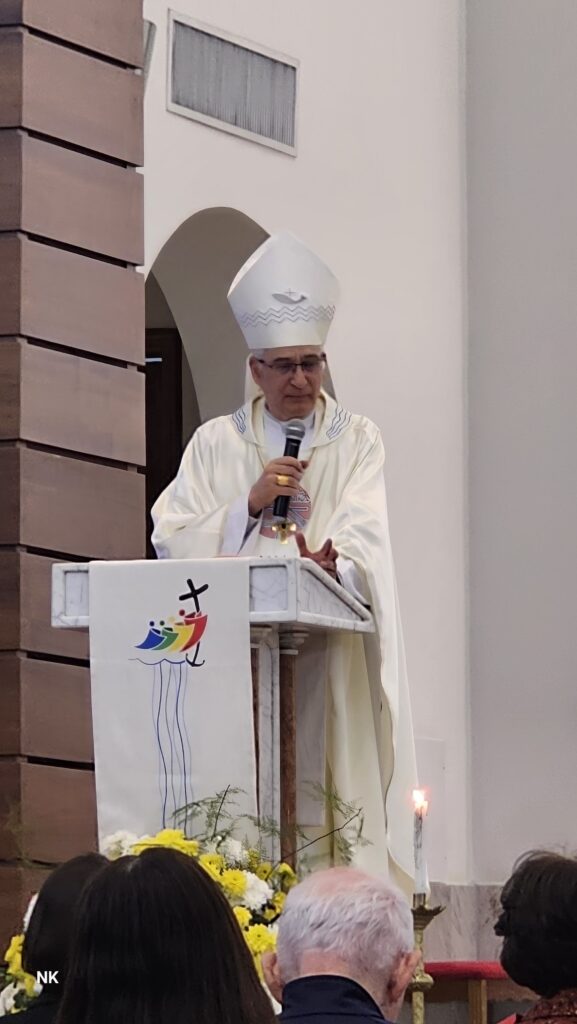 A Missa foi presidida por Dom Lauro Sérgio Versiani Barbosa, bispo diocesano, que iniciou sua homilia acolhendo fraternalmente todos os presentes, destacando a importância da participação de cada um nesse momento histórico. Em sua reflexão, Dom Lauro resgatou os caminhos que levaram à criação da Diocese de Colatina, recordando marcos importantes da história da Igreja no Espírito Santo.