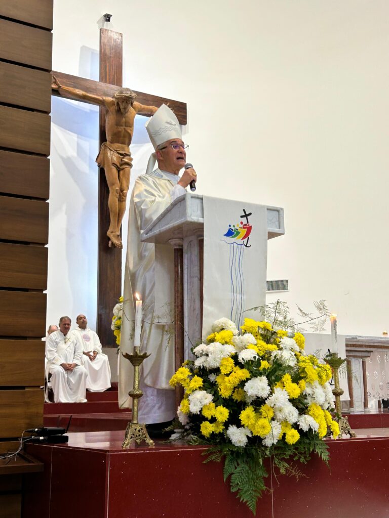 Na terça-feira, 15 de julho de 2025, a Diocese de Colatina celebrou com gratidão e alegria seus 35 anos de instalação. A data foi marcada por uma Solene Celebração Eucarística na Catedral, com a presença de fiéis vindos de diversas paróquias da diocese, padres do clero local, diáconos, seminaristas, religiosos(as) e lideranças pastorais.