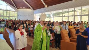Durante sua homilia, Dom Décio emocionou os fiéis ao afirmar que “a criança é o sorriso de Deus”, destacando a relevância da Pastoral da Criança na promoção da vida e no cuidado com os pequenos, especialmente os mais vulneráveis.