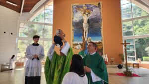 A Celebração Eucarística foi presidida pelo Bispo Emérito, Dom Décio Sossai Zandonade, e concelebrada pelos padres Luismar Passarelli (Reitor do Santuário Nossa Senhora da Saúde), Edgar Rigoni (Reitor da Casa de Formação Maria Mãe da Igreja) e José Edilson da Silva (Coordenador Nacional Adjunto da Pastoral da Criança).