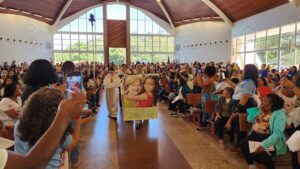 Após o momento de confraternização e almoço, Padre José Edilson conduziu uma profunda reflexão com a liderança presente, inspirando-se na passagem bíblica dos “Discípulos de Emaús”. Ele ressaltou a missão da Pastoral da Criança em ser sinal de esperança diante dos grandes desafios enfrentados pela Igreja e pela sociedade atual.