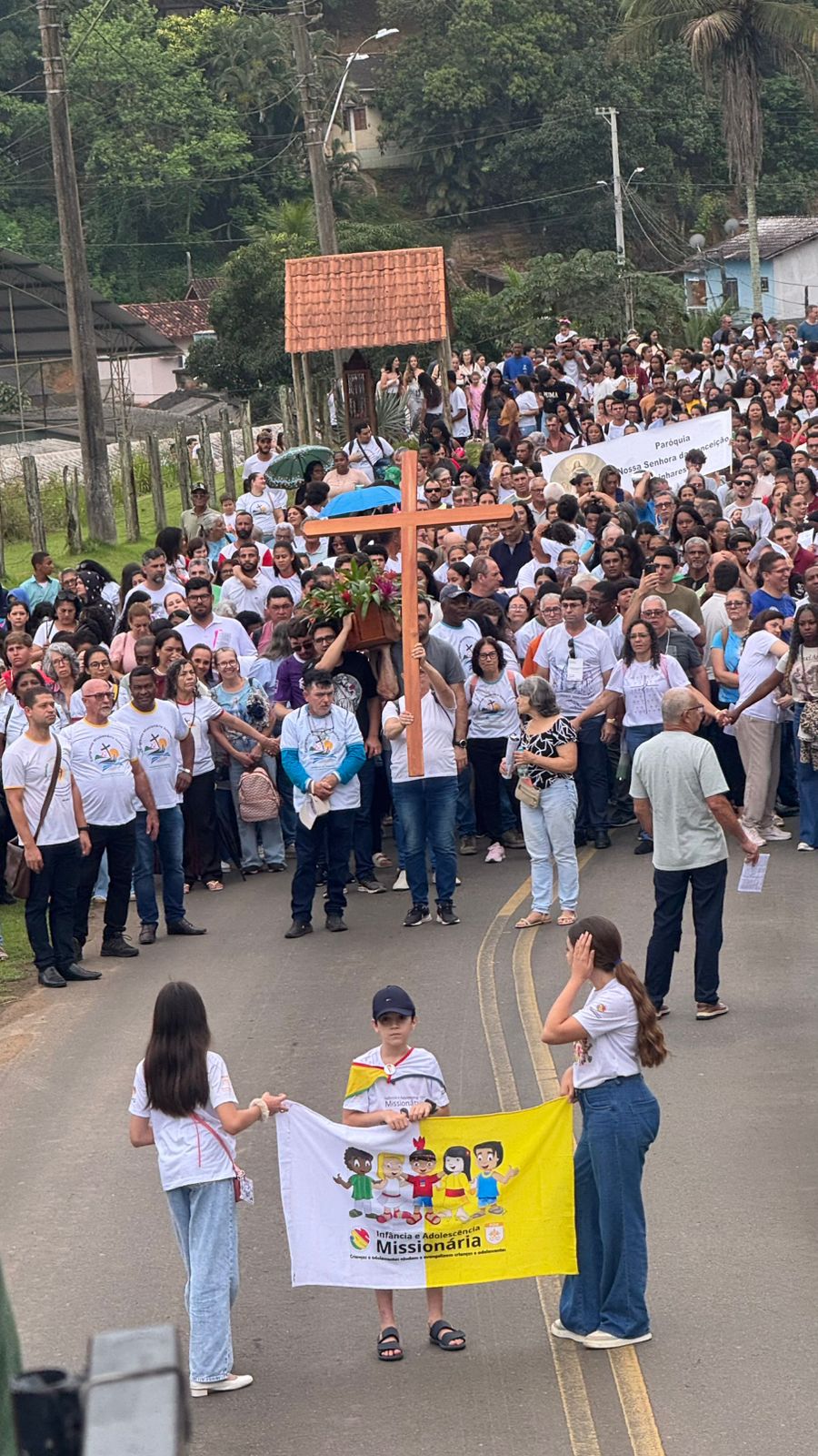 O ponto alto do congresso aconteceu no domingo (19), com a grande celebração diocesana, que contou com a presença de caravanas vindas das diversas paróquias que compõem a Diocese de Colatina. A manhã foi marcada por uma caminhada festiva e participativa, embalada pelos cantos do Ministério Cantando a Vida, da Paróquia Nossa Senhora da Glória, de Colatina, em um verdadeiro clima de comunhão, alegria e fé.