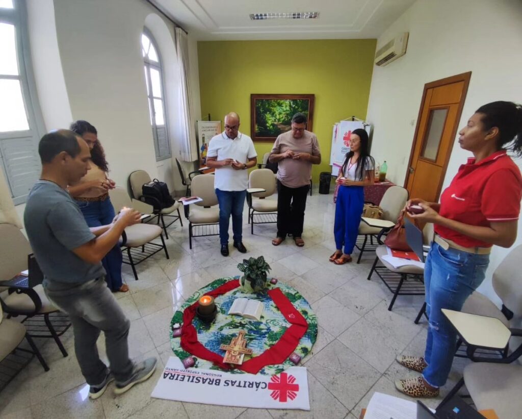 Participaram desse momento o Padre Marcelo Keller (Presidente da Cáritas Diocesana de Colatina), Ana Paula (Coordenadora da Cáritas Diocesana de São Mateus, Rayane Almeida (Coordenadora da Cáritas Diocesana de Cachoeiro de Itapemirim) Jaime (Assessor do Secretariado Nacional) Rubens (Secretário Cáritas Regional) e Aguilane (Coordenação Colegiada Cáritas Regional).