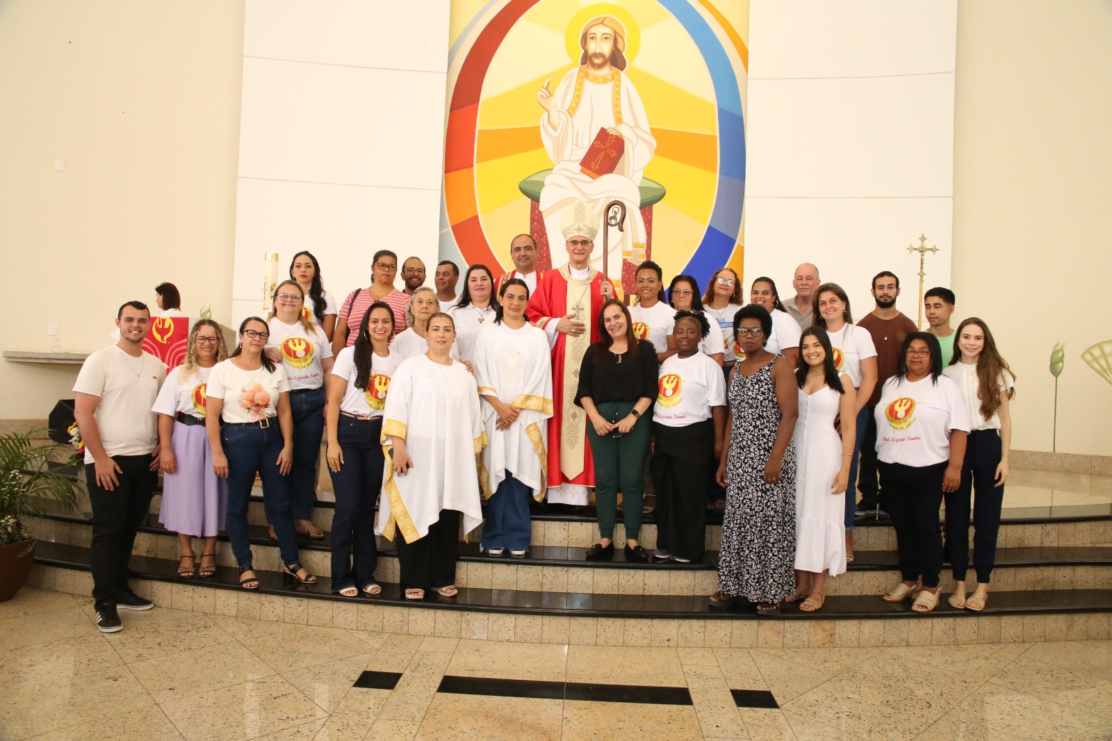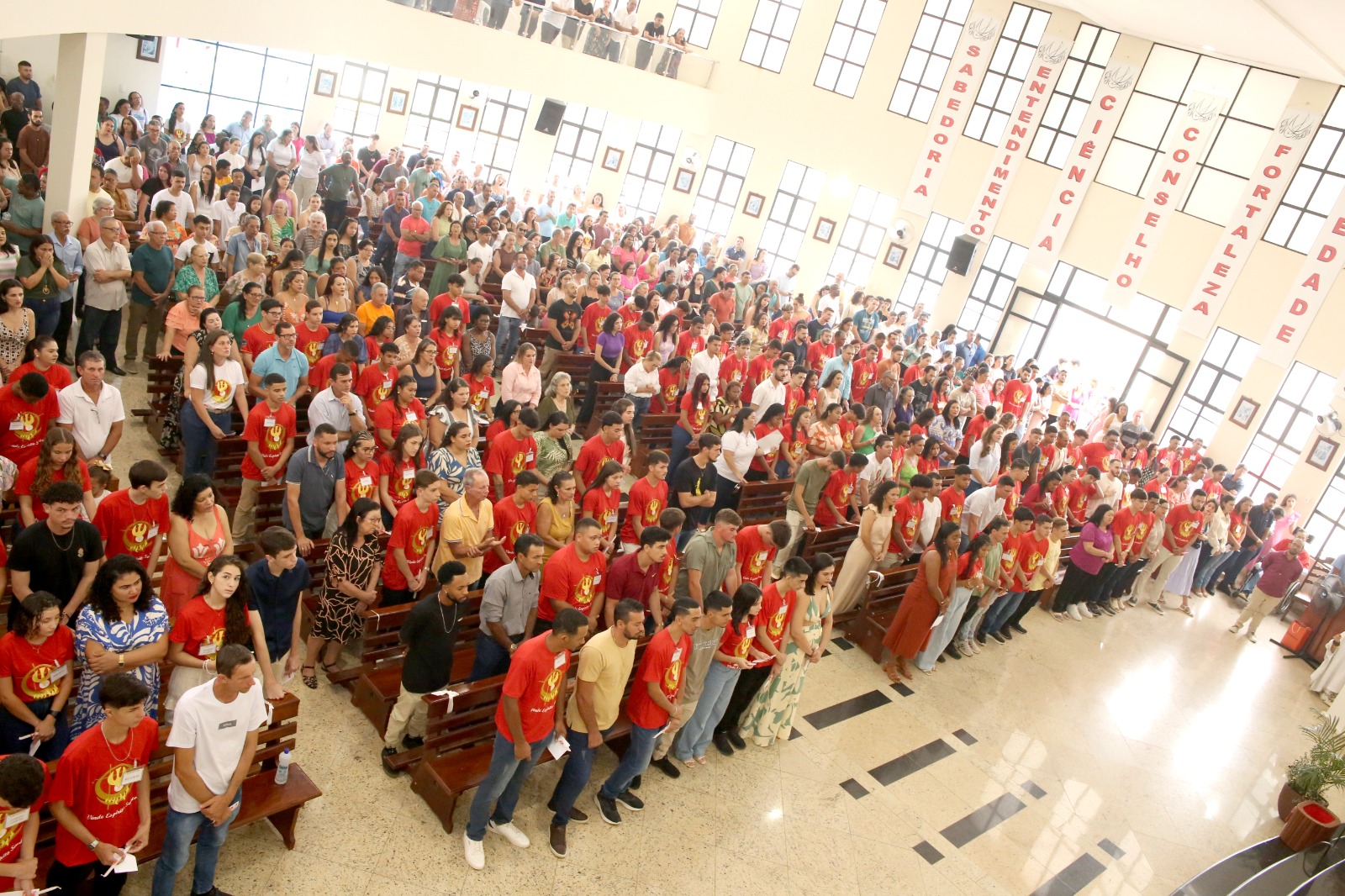 Na homilia, Dom Lauro ressaltou a importância da renovação do batismo e o chamado ao compromisso com o amor a Jesus Cristo. O templo estava especialmente ornamentado para a ocasião, com banners que enalteciam as virtudes cristãs essenciais para a vida de fé: “sabedoria”, “entendimento”, “ciência”, “conselho”, “fortaleza”, “piedade” e “temor de Deus.”
