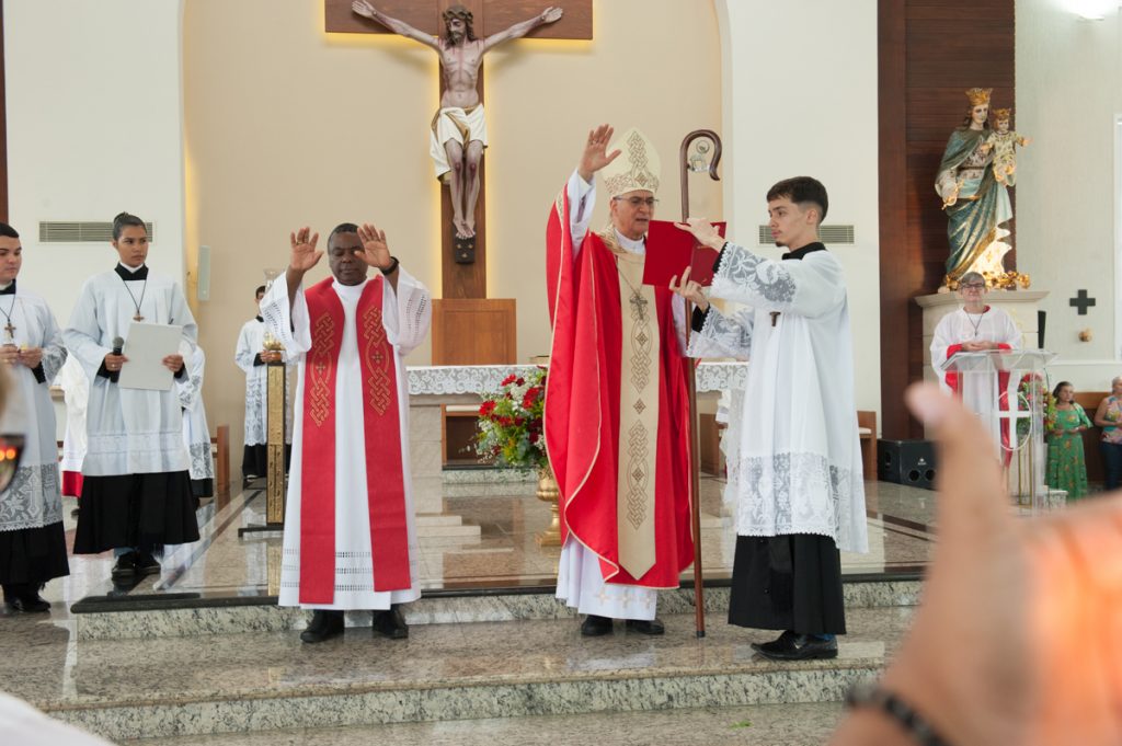 Marilândia (ES) – Em um dia significativo para a comunidade de Marilândia e para a Diocese de Colatina, Dom Lauro Sérgio Versiani Barbosa celebrou não só o sacramento da Crisma de 164 jovens e adultos, mas também os três anos de sua nomeação como bispo da diocese. “A Crisma faz de cada um testemunho de esperança e missão”, ressaltou Dom Lauro, “é um convite a todos para uma vida em fé, esperança e caridade, em profunda comunhão com a Igreja e com Cristo”. A celebração ocorreu na Paróquia Nossa Senhora Auxiliadora no dia 27 de outubro, às 8h, unindo famílias, padrinhos, madrinhas e fiéis em uma emocionante cerimônia que reforçou o chamado ao discipulado e a missão de ser luz no mundo.
