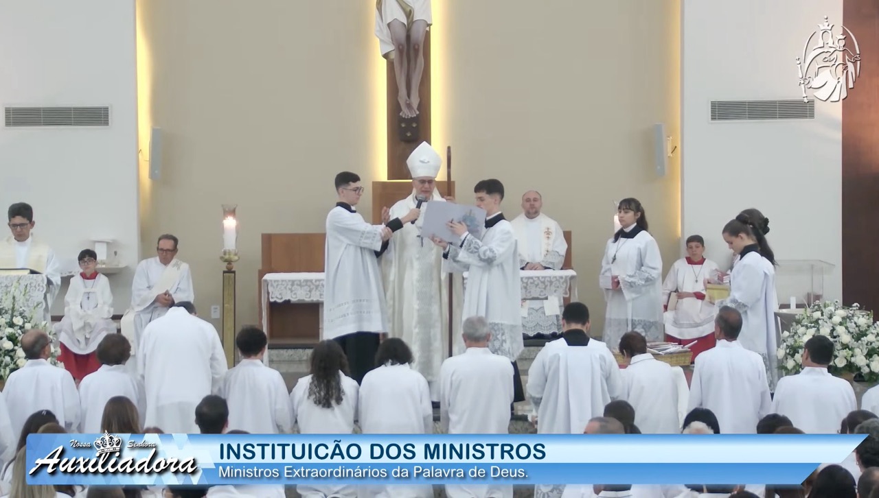 O rito prosseguiu então com a instituição dos ministros, realizada de forma solene e por serviços, conferindo-lhes suas missões e reforçando o compromisso de serviço ao Corpo Místico de Cristo, a Igreja, através do ministério leigo.