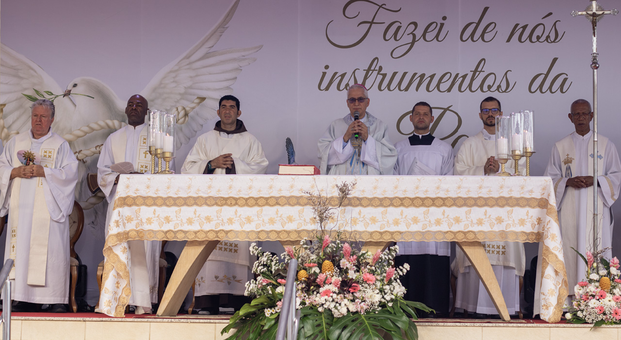 Ao longo da homilia, o bispo fez ainda um apelo concreto à conversão pessoal e comunitária. Recordou que o Pai Nosso ensina a todos a rezar como irmãos, sem distinção de raça, cultura, religião ou posição social. “O Pai Nosso nos ensina isso: somos todos irmãos”, frisou. Segundo ele, a paz começa quando se vive o Evangelho na prática, com obras de misericórdia, partilha do pão, cuidado com os pobres e compromisso com a justiça. “Não é uma paz ingênua, é uma paz de quem sabe que o mundo está marcado por injustiças que devem ser vencidas, mas não com os instrumentos da violência, e sim com os instrumentos do Evangelho”, concluiu.