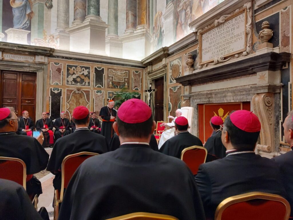 Neste último dia de curso em Roma, nosso bispo diocesano, dom Lauro Sérgio Versiani Barbosa, participou de uma audiência com o Papa Francisco. O encontro aconteceu na tarde desta segunda-feira (19/9), na Sala Clementina, no Vaticano.
