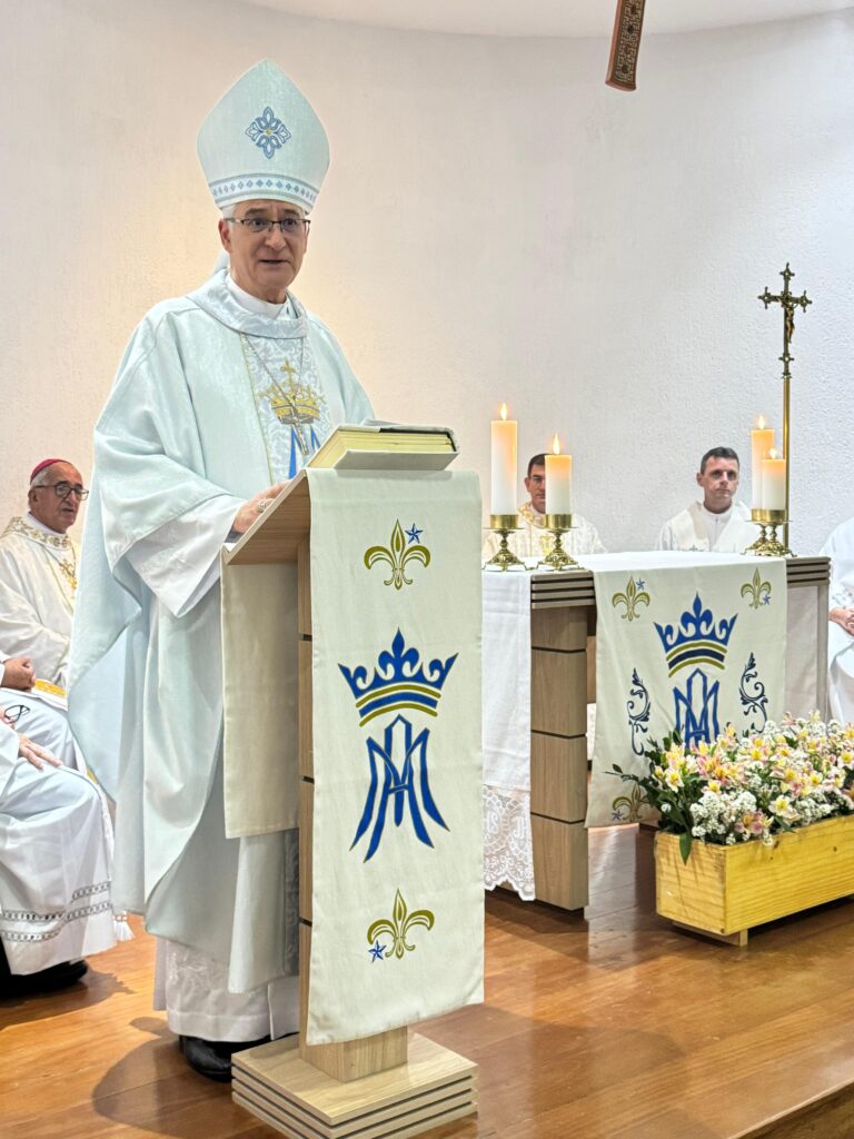 Em sua homilia, Dom Lauro destacou a importância de Maria como Mãe da Igreja, ressaltando que sua maternidade espiritual continua a acompanhar e sustentar a vida da comunidade cristã. Assim, afirmou: