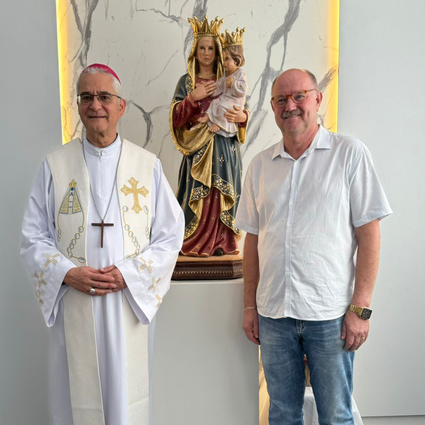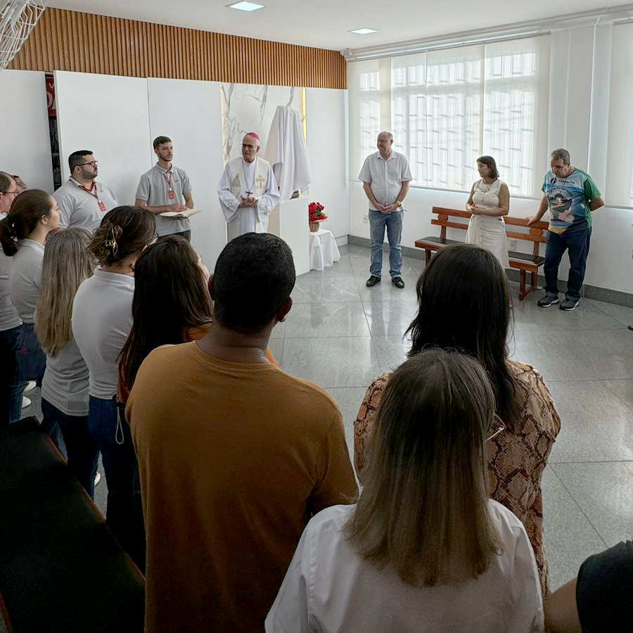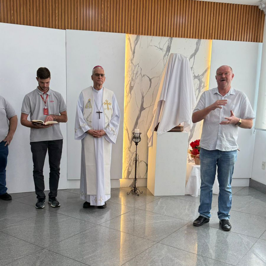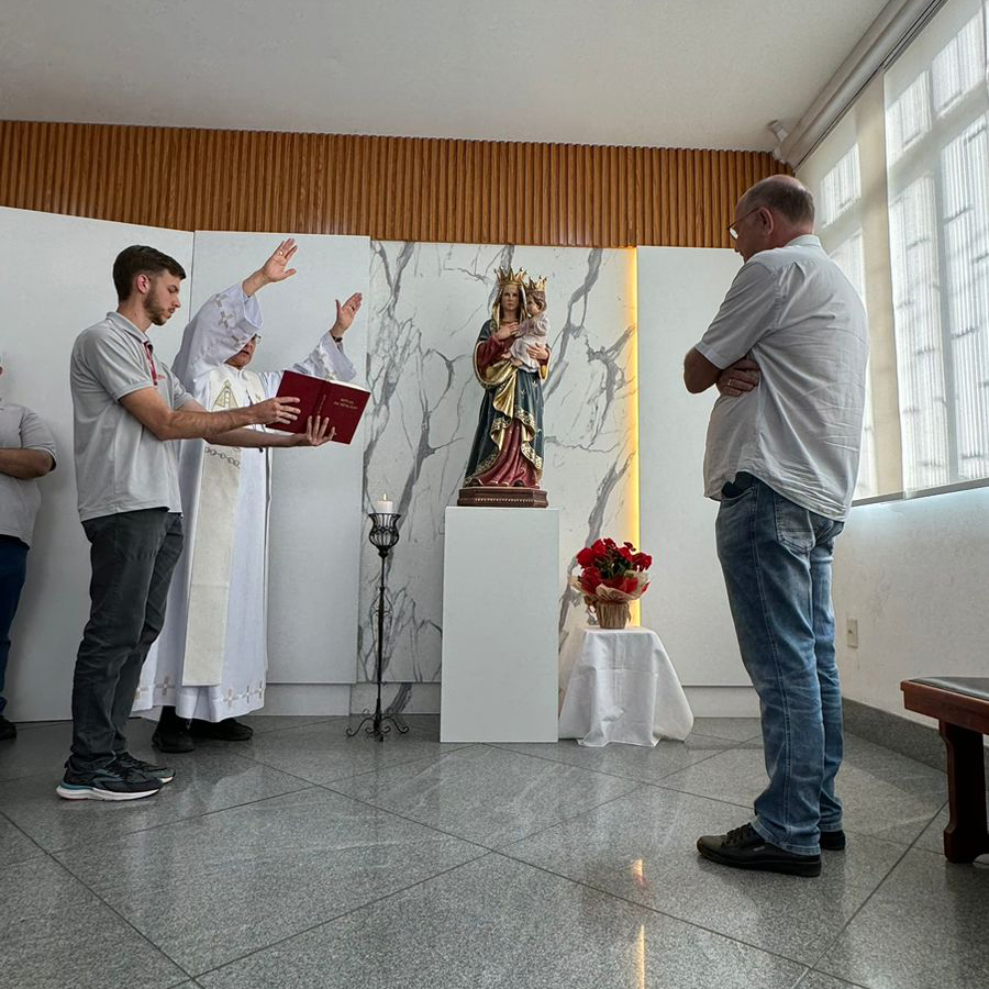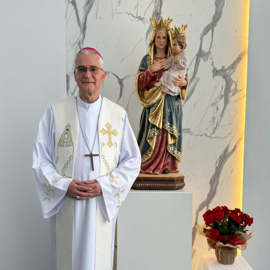 Na manhã desta segunda-feira (15/7), no dia que a Diocese comemora seus 34 anos, o Edifício São João Paulo II, sede da Cúria Diocesana, recebeu uma réplica da imagem da padroeira da Diocese, Nossa Senhora da Saúde. O bispo diocesano, dom Lauro Sérgio, realizou o rito de entronização e bênção da imagem, na presença dos colaboradores da Mitra, da Paróquia da Catedral e da Cordis, além do reitor do Santuário, padre Luismar Passarelli.