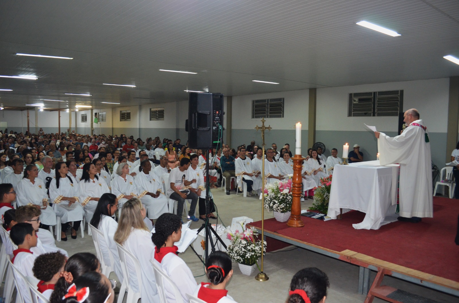 Aracruz (ES) – No último domingo (17/11), a comunidade de Aracruz vivenciou um momento histórico de fé e celebração. Centenas de fiéis se reuniram para participar da Santa Missa e acompanhar a bênção do terreno onde serão edificadas a nova sede paroquial e a Matriz da Paróquia Santa Teresinha do Menino Jesus.