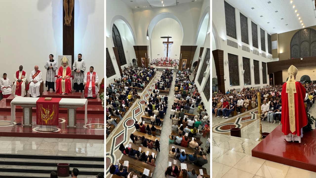 “Queridos crismandos, assim como o batismo, a Crisma é recebida uma vez na vida, mas seu efeito dura para sempre. Vocês são chamados a ser testemunhas do Cristo ressuscitado em suas famílias, em suas escolas, em seus trabalhos e em todos os lugares onde estiverem. Sejam luz para este mundo, testemunhem o amor de Jesus e o poder do Espírito Santo em suas vidas”, ensinou.