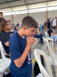 Durante o dia, os jovens viveram experiências de adoração, partilha e envio para a missão, encerrando o evento com um grande show de louvor conduzido pelo ministério Filhos do Rei.