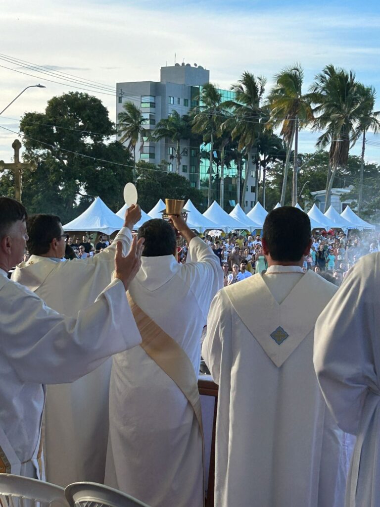 Após a missa, o público acompanhou momentos de pregação, animação e shows nacionais, que encerraram a festa com alegria e manifestação pública de fé.