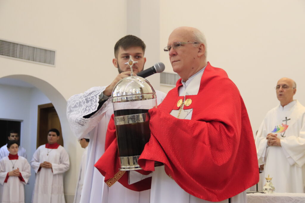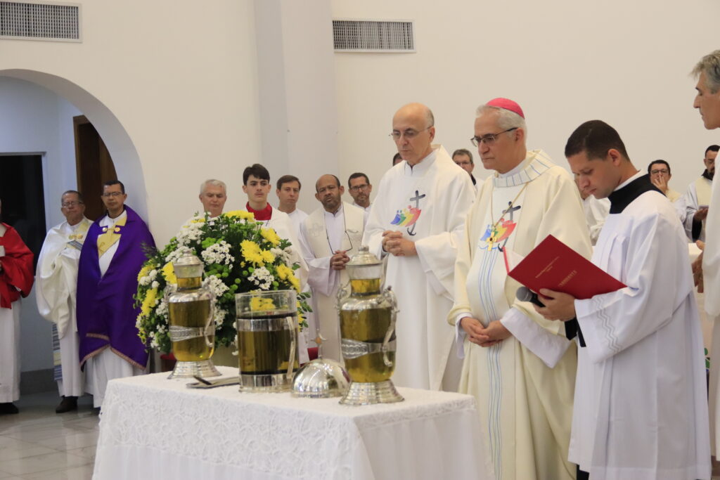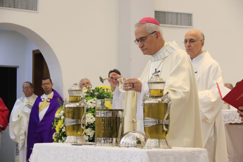 Na manhã da Quinta-feira Santa, a Igreja celebrou a tradicional Missa dos Santos Óleos, um dos momentos mais significativos do calendário litúrgico. Durante a cerimônia, realizada na Catedral Diocesana de Colatina, os óleos do Batismo e dos Enfermos foram abençoados, enquanto o óleo do Crisma foi consagrado para ser utilizado ao longo de todo o ano de 2025, até a Páscoa do ano seguinte.