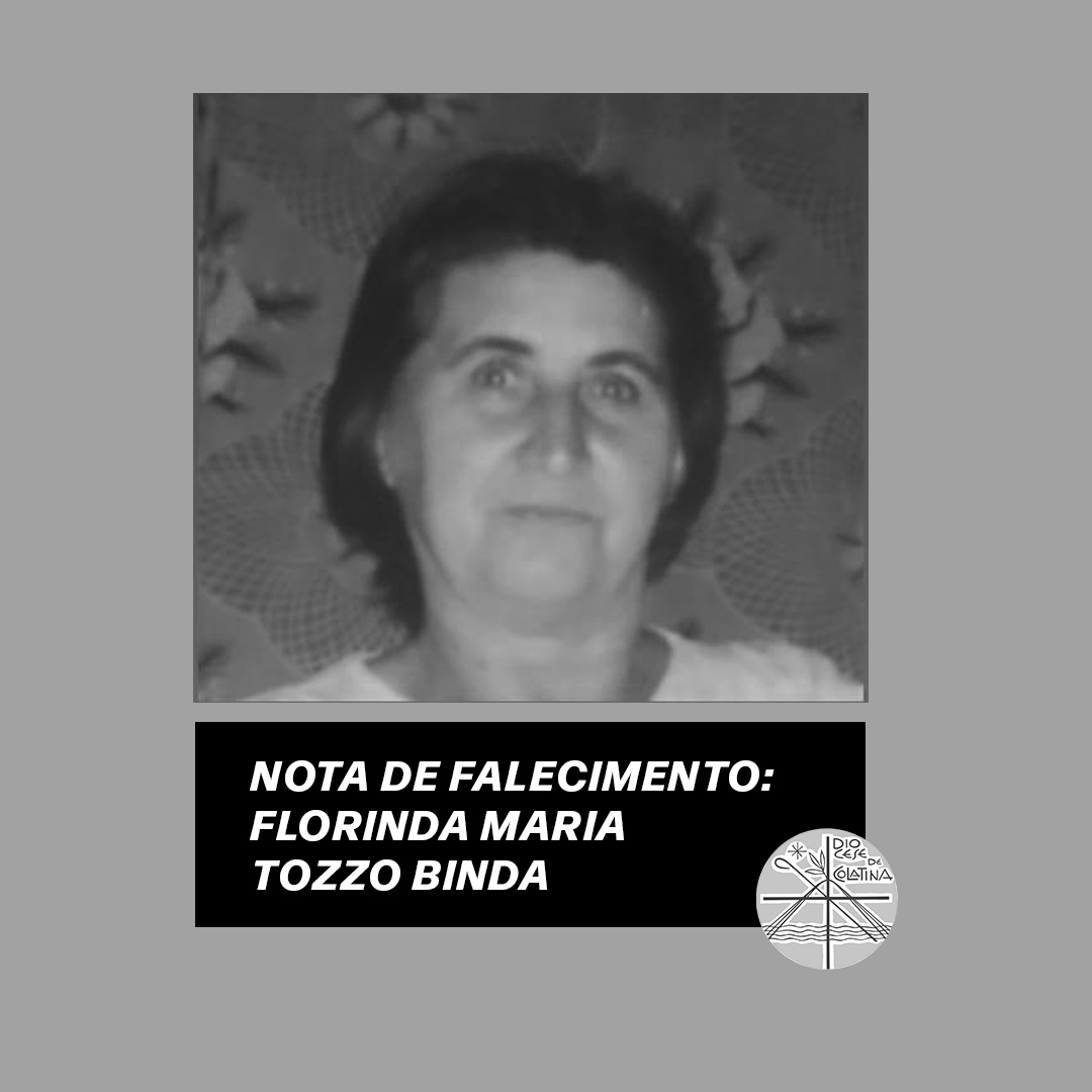 A Diocese de Colatina comunica, com profundo pesar, o falecimento da senhora Florinda Maria Tozzo Binda, mãe do padre Suderlan Tozzo Binda, pároco da Paróquia Imaculada Conceição, em Coqueiral, Aracruz (ES).
