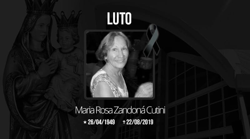 A Diocese de Colatina manifesta profundo pesar pelo falecimento da senhora Maria Rosa Zandoná Cutini, importante voluntária do Santuário Diocesano Nossa Senhora da Saúde, em Ibiraçu, ocorrido na noite desta quinta-feira (22/8).