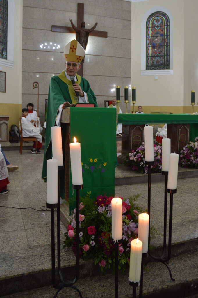 Com grande participação dos fiéis, a intenção para o quarto dia da novena foi pelas famílias e, ao final dom Lauro Sérgio realizou a bênção sobre as famílias ali presentes. A missa foi concelebrada pelo pároco, padre Marcelo Keller e pelo diácono permanente Mercinio Gobbo.