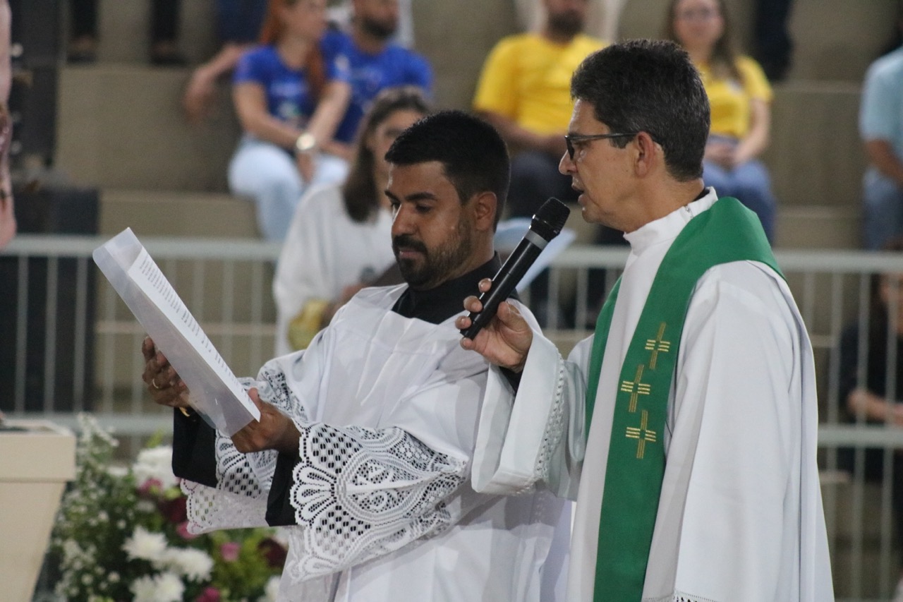 A celebração teve continuidade com o ato penitencial, o hino de louvor e, em seguida, a Liturgia da Palavra. O Evangelho foi proclamado pelo novo pároco.