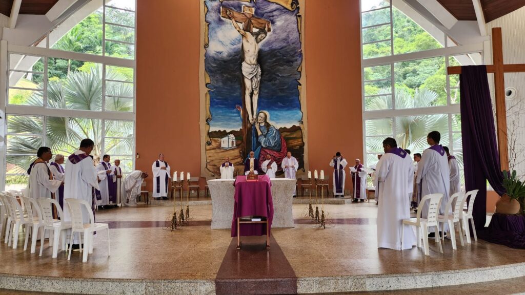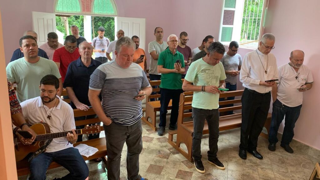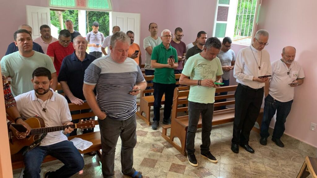 O Retiro dos padres da Diocese de Colatina teve em seu último dia, uma caminhada rezando o terço, contemplando cada capelinha ao longo do caminho, saindo do Instituto Espírito Santo de Inovação Social (IESIS) até o Santuário Diocesano Nossa Senhora da Saúde, em Ibiraçu.