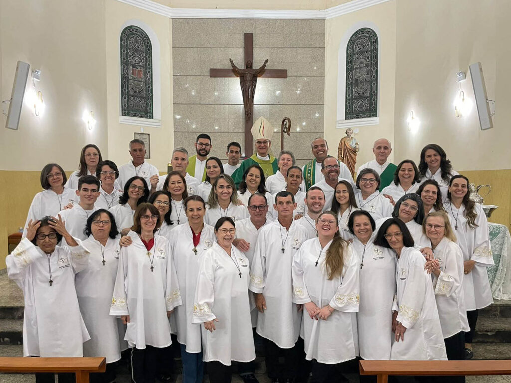 No último sábado (23), o bispo diocesano dom Lauro Sérgio, instituiu mais de 160 ministros leigos, sendo Ministros Extraordinários da Sagrada Eucaristia, da Palavra, das Exéquias e do Batismo, na paróquia São Pedro em Baixo Guandu.