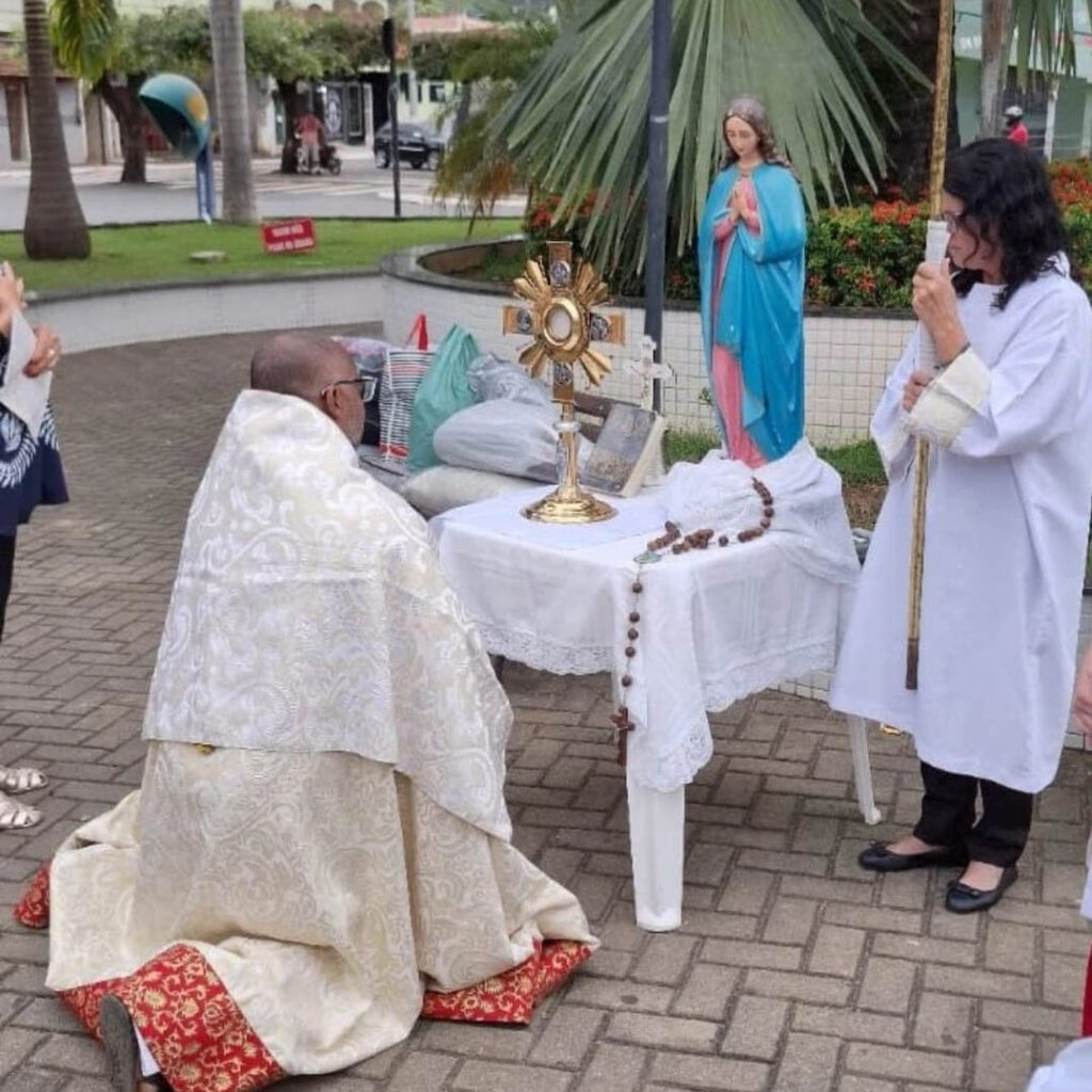 A Paróquia Missionária São Francisco de Assis, em Laranja da Terra, celebrou na última quinta-feira (30/5), a Solenidade de Corpus Christi com a procissão pelas ruas da cidade. Porém, este ano, os tradicionais tapetes foram feitos com doações de alimentos, roupas e produtos para higiene pessoal e de limpeza.
