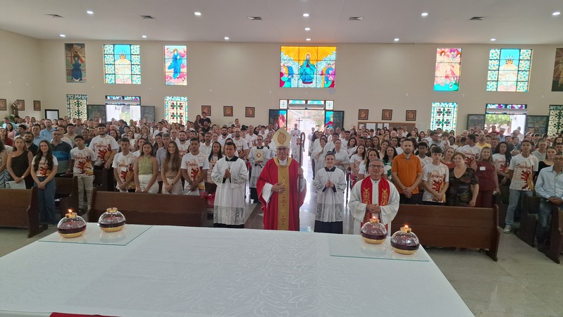 No último dia 5 de outubro, a Paróquia Nossa Senhora da Glória, localizada no bairro Vila Lenira, em Colatina, viveu um momento de profunda emoção e espiritualidade com a celebração do Sacramento da Crisma de 80 jovens e adultos.