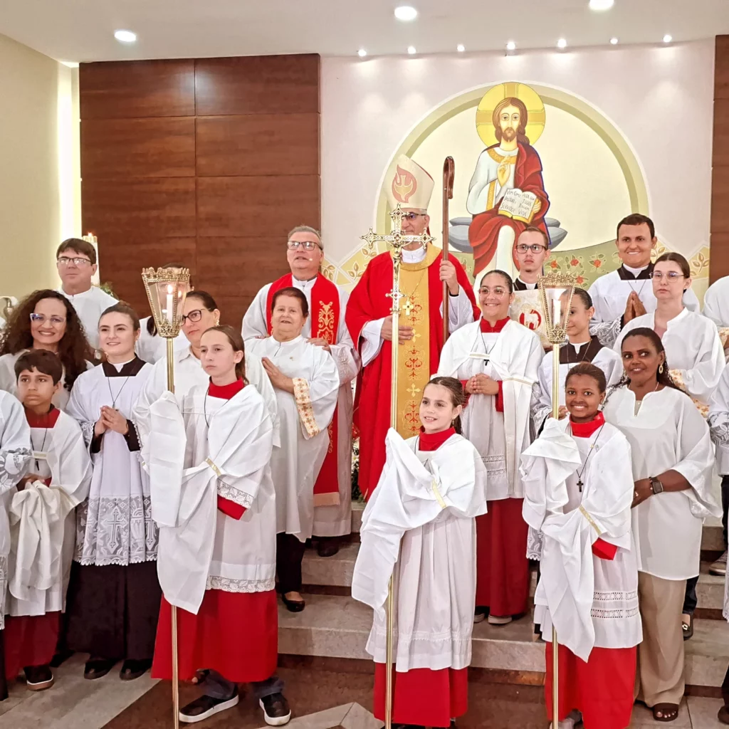 A cerimônia foi presidida pelo bispo diocesano Dom Lauro Sérgio Versiani Barbosa, que conduziu a Santa Missa com palavras de encorajamento e fé, reunindo os crismandos, seus familiares e toda a comunidade paroquial para testemunhar esse importante passo na vida cristã dos participantes.