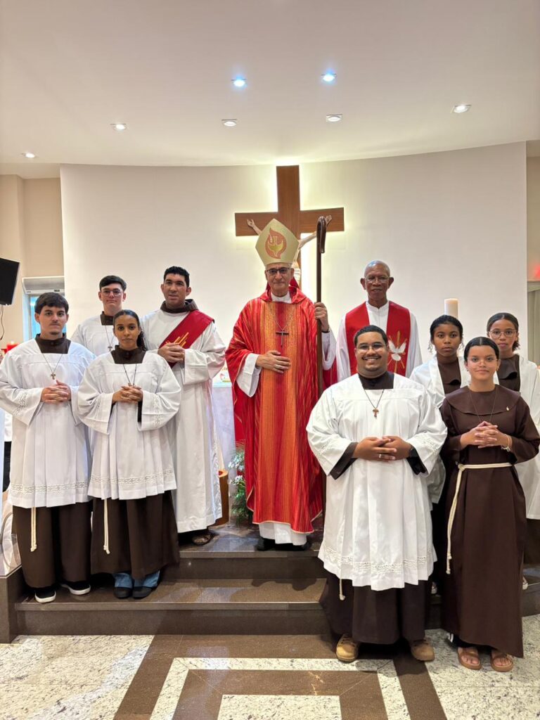 A Paróquia Santa Clara de Assis viveu um dia de festa neste 15 de novembro, quando foi celebrada a Missa da Crisma, reunindo familiares, comunidade e jovens que receberam o sacramento. A celebração foi presidida por Dom Lauro e concelebrada pelo pároco, Frei Pedro, e pelo diácono, Frei David.