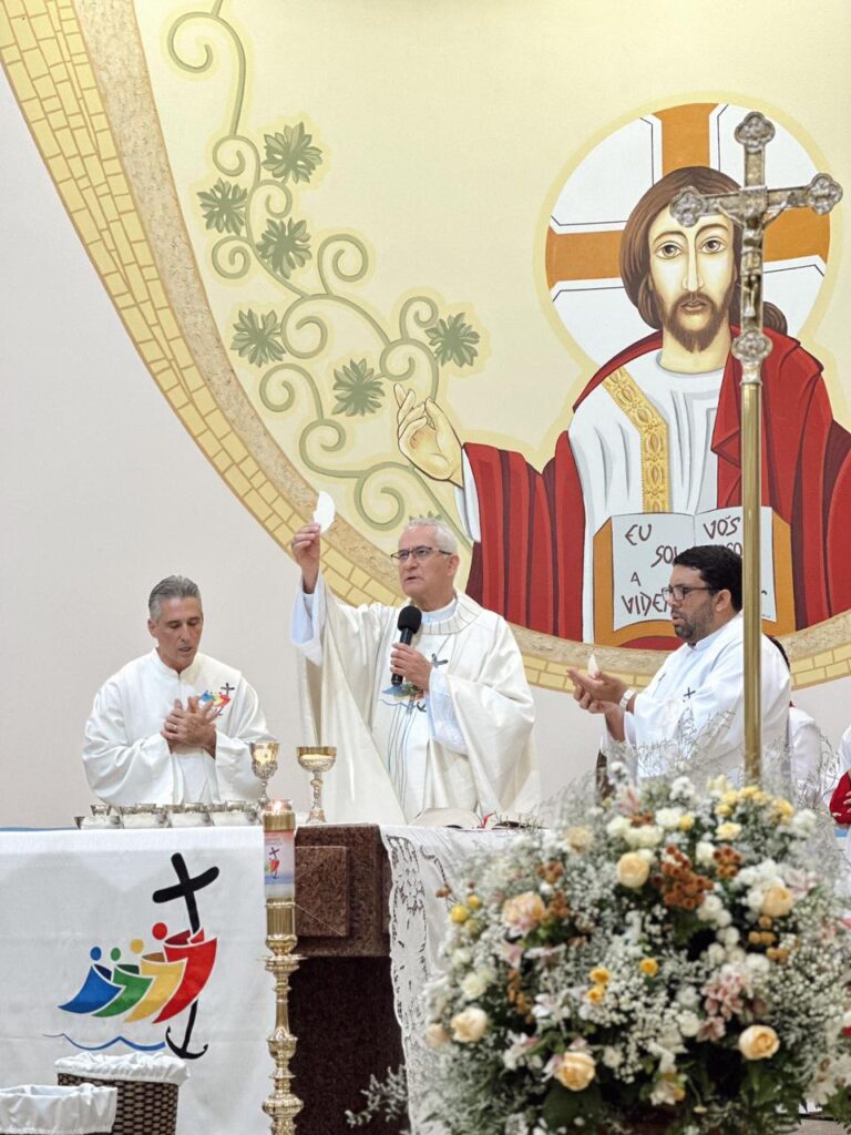 A Santa Missa foi presidida pelo bispo diocesano, Dom Lauro, e concelebrada pelo pároco, Padre Wilderson, com a participação do Diácono Rogério. A Matriz estava completamente cheia, com presença de representantes de todas as comunidades que compõem a paróquia, evidenciando o espírito de unidade e comunhão que marca a vida paroquial.