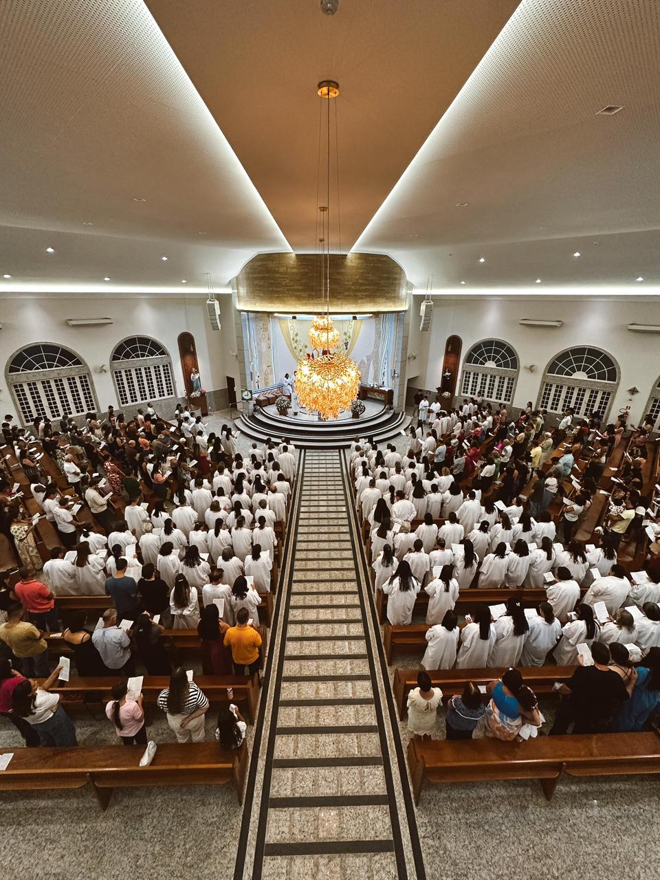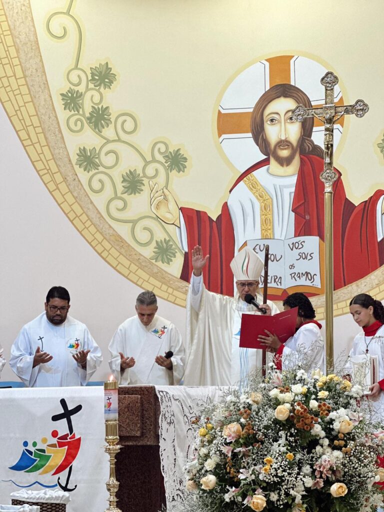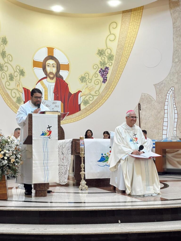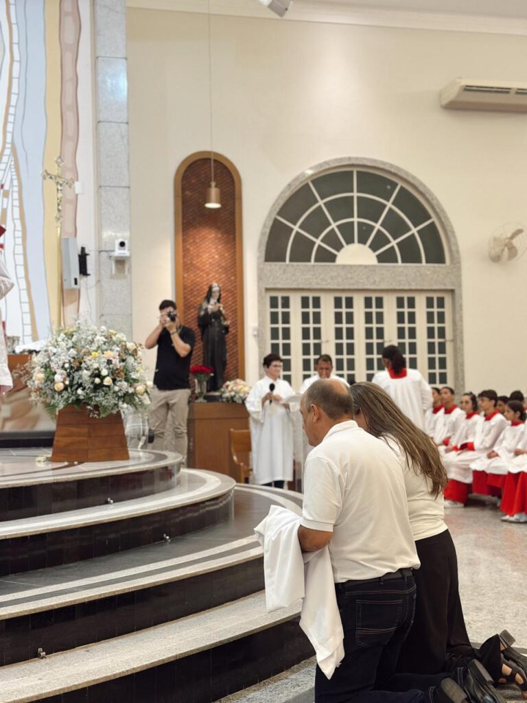 No sábado, 22, na Matriz da Paróquia Santa Rita de Cássia, em Linhares, a comunidade paroquial se reuniu em grande número para celebrar um dos momentos mais significativos do ano litúrgico: a Solenidade de Nosso Senhor Jesus Cristo, Rei do Universo. A celebração foi marcada pela instituição de novos Ministros Extraordinários da Distribuição da Sagrada Comunhão Eucarística, Ministros do Sacramento do Batismo e Assistentes Leigos para o Matrimônio, reafirmando o compromisso da Igreja com a missão, o serviço e a corresponsabilidade de todos os fiéis.