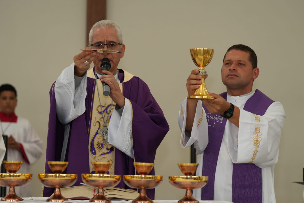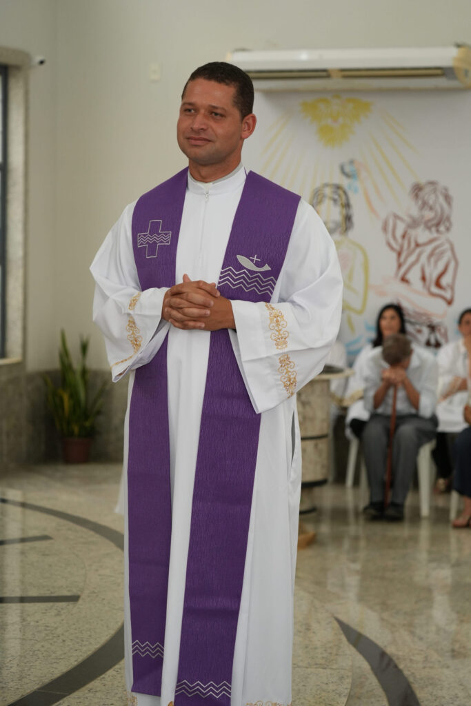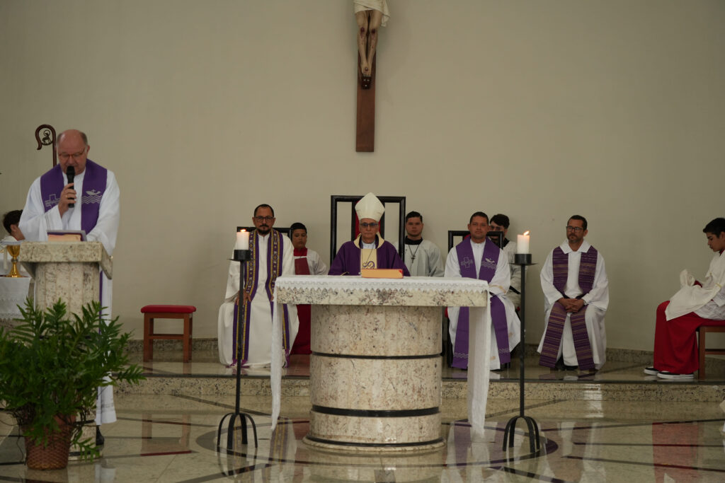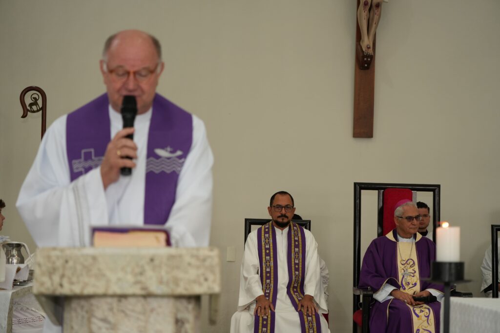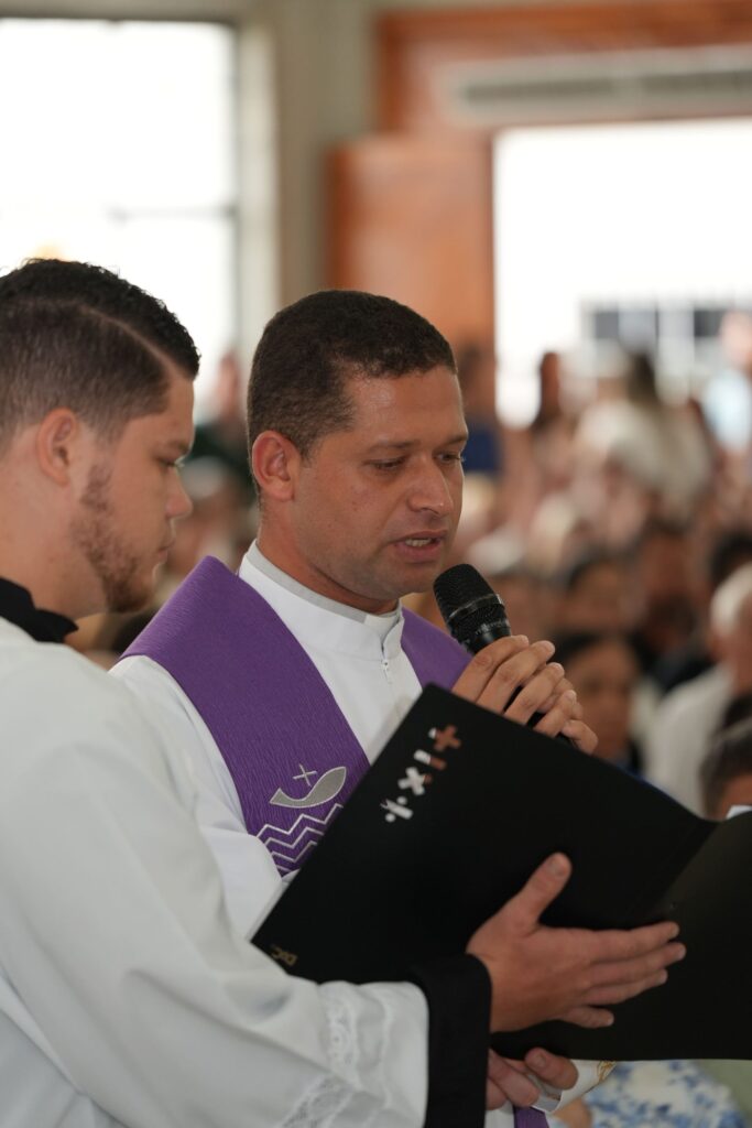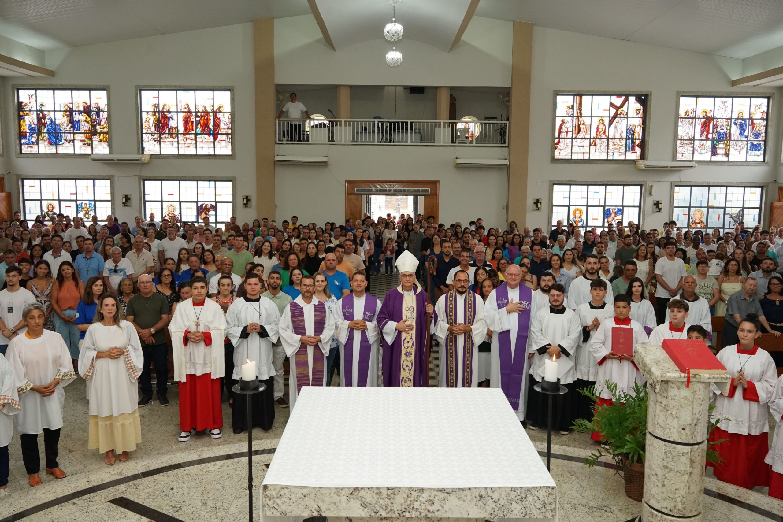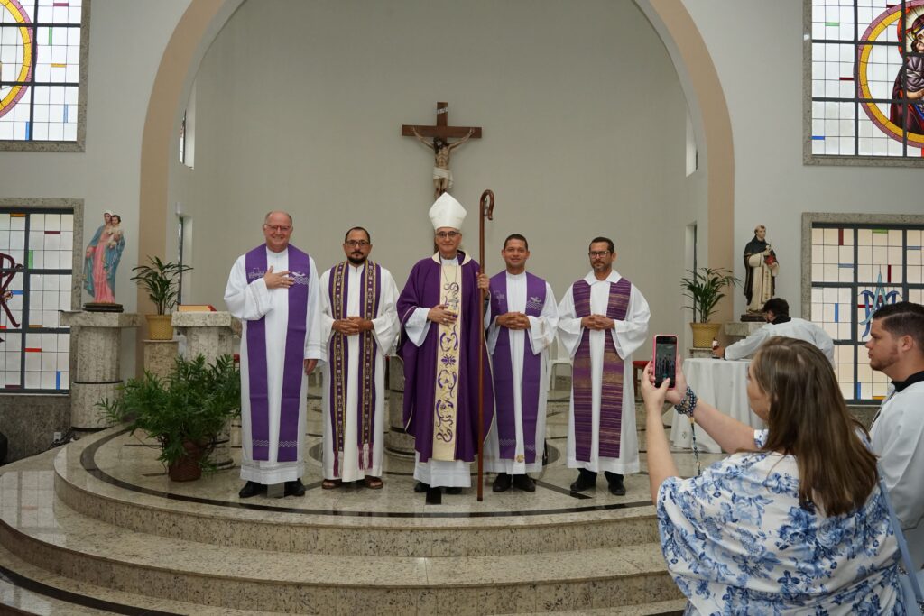 A Santa Missa foi presidida pelo bispo diocesano, Dom Lauro, que conduziu o rito de apresentação do novo administrador. A celebração contou ainda com a presença de sacerdotes, lideranças e fiéis vindos de diversas comunidades, manifestando a comunhão e a unidade que marcam a vida da Igreja.