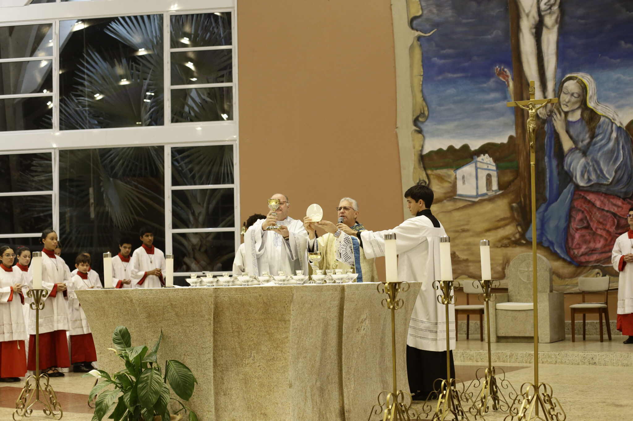 A Missa contou com a presença das comunidades da paróquia, ministros, coroinhas, do pároco, padre Antônio Luiz Pazzolini Pandolfi, e do reitor do Santuário, padre Luismar Passarelli. A homilia foi proferida pelo reitor do Santuário. “Hoje celebramos a Assunção de Nossa Senhora, um dogma que nos ajuda a entender e a fortalecer nossa fé. Para nós, Maria foi elevada ao céu de corpo e alma. Esta é uma verdade para nós”, destacou padre Luismar em sua homilia.