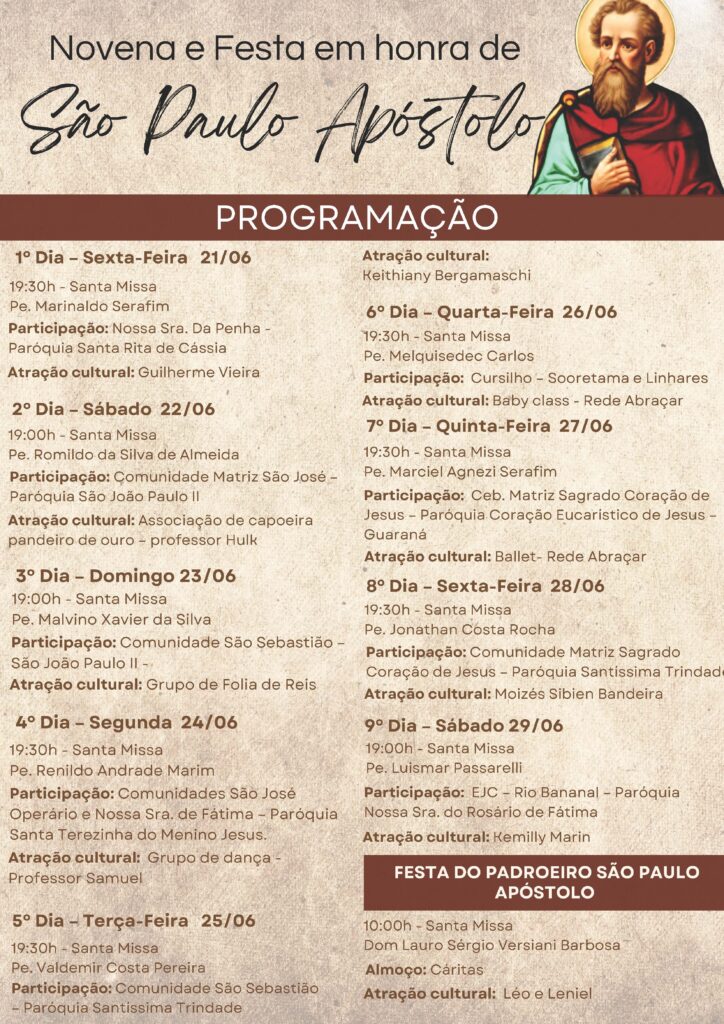 A paróquia São Paulo Apóstolo, em Bebedouro, Linhares, se prepara para celebrar a festa do seu padroeiro no domingo, 30 de junho.