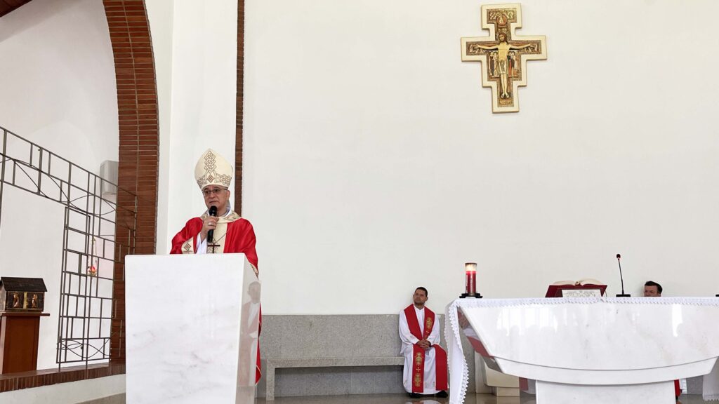 O celebrante mencionou ainda as tragédias climáticas recentes no Brasil e frisou a profecia evangélica contida nestes lugares. Lembro que a Encíclica Laudato Si’ do Papa Francisco, que completará 10 anos em 2025, é uma grande profecia dos tempos atuais, que dialoga com a Teologia da Criação, com o magistério da Igreja e que propõe estratégias de ação, apresenta uma ecologia integral que requer santidade e renovação. “Nossa santificação não se faz fora disso. Ou estamos em comunhão na Igreja, com seus desafios, com os sofrimentos do povo, e somos profetas e dóceis à ação do Espírito Santo ou não tem santificação para nós, estaremos cuidando e apascentando a nós mesmos”, ensinou.