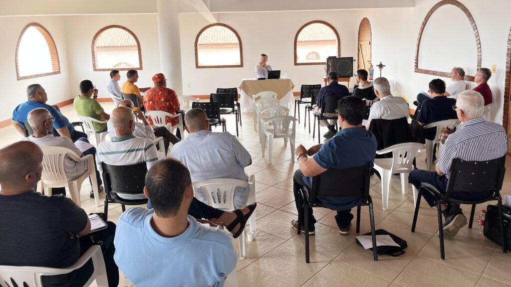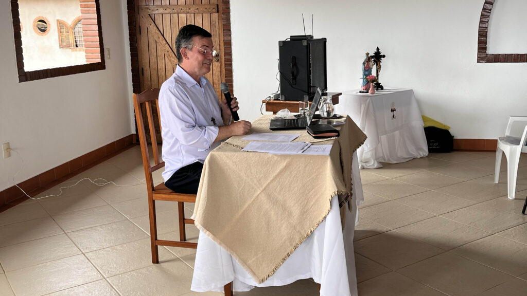 No segundo momento da manhã os presbíteros participaram da palestra ministrada pelo Padre Aldir Roque Los, da Diocese de São Mateus, que refletiu sobre a temática da Santificação do Clero. Ele iniciou sua fala discorrendo sobre um texto de Rubens Alves, intitulado “ter olhos de poeta”, e afirmou logo de início: “Precisaríamos ter uma vida de padre mais poética”.