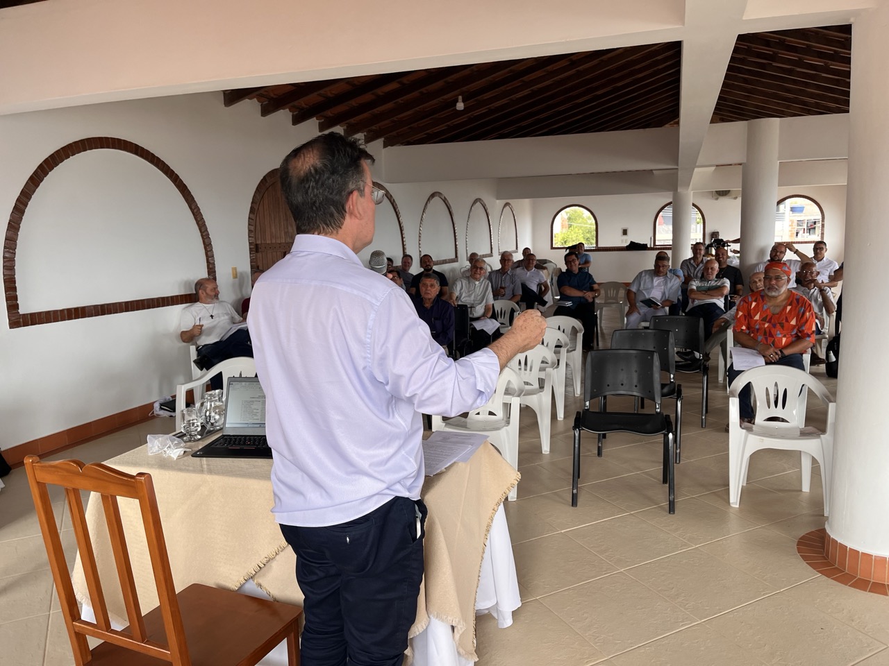 No segundo momento da manhã os presbíteros participaram da palestra ministrada pelo Padre Aldir Roque Los, da Diocese de São Mateus, que refletiu sobre a temática da Santificação do Clero. Ele iniciou sua fala discorrendo sobre um texto de Rubens Alves, intitulado “ter olhos de poeta”, e afirmou logo de início: “Precisaríamos ter uma vida de padre mais poética”.